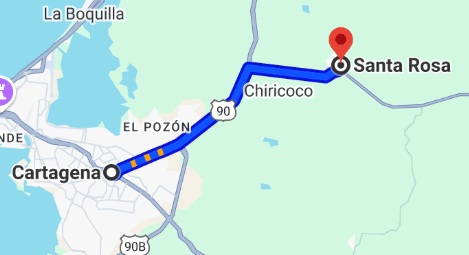Ruta en carro de Cartagena a Santa Rosa 2025